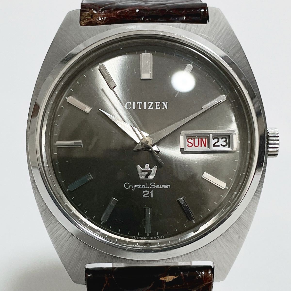 - 美品 稼働品 CITIZENシチズン Crystal Seven クリスタルセブン 21石 自動巻/AT ダークグレー文字盤 デイデイト ACSS 2901a・Y メンズ腕時計