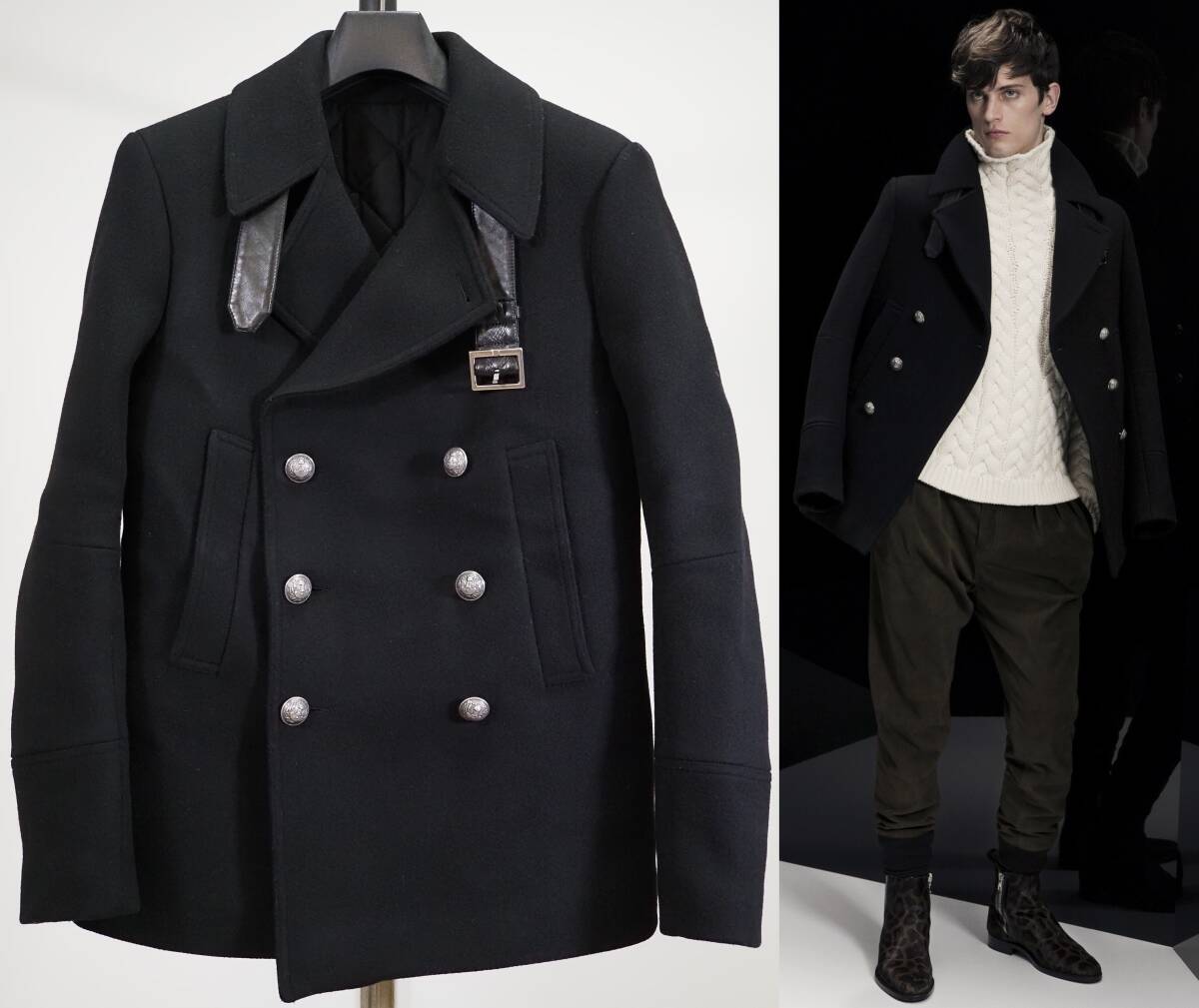 > 美品 定価41万円 BALMAIN バルマン 14AW中綿メルトンピーコート46黒 France製 オリヴィエ・ルスタン