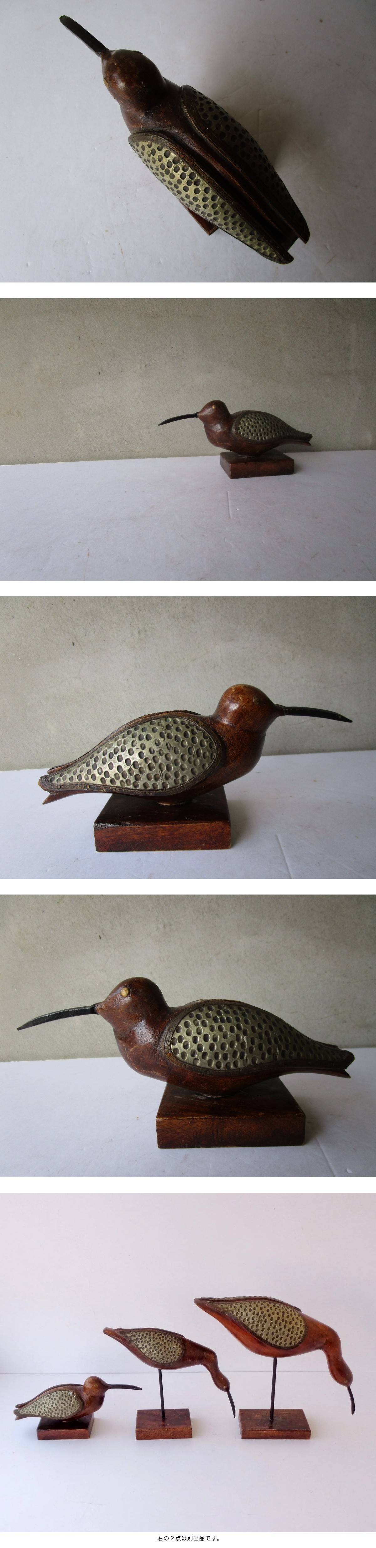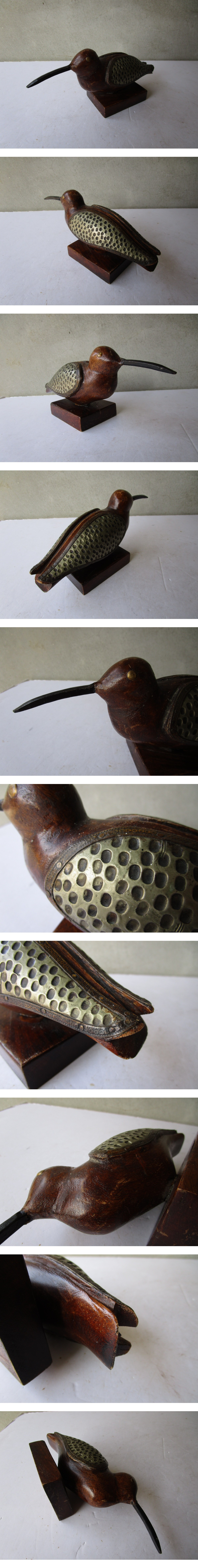 > 1960~70年代 イタリア 木+金属製の佇む鳥のオブジェ 24.5cm長 ハンドカーヴィング /アーツ アンド クラフツ/イームズ/ウェグナー/Vistosi