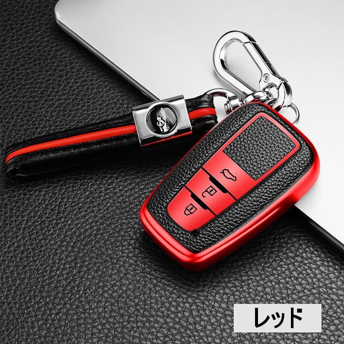 - トヨタ 対応 キーケース キーカバー キーホルダーオシャレ 高級 Toyota C-HR 新型 クラウン 50系 プリウス 70カムリ【レッド/2ボタンb】