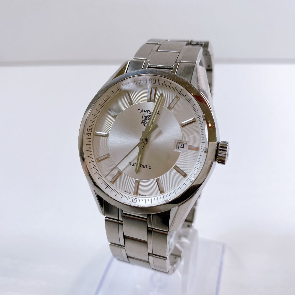 > 340【中古】TAGHEUER CARRERA タグホイヤー カレラ キャリバー5 メンズ腕時計 デイト 自動巻き シルバー WV211A-3 動作確認済み 現状品