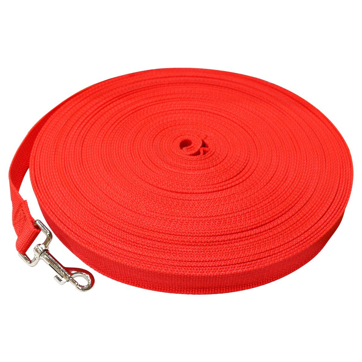 - 犬用 ロングリード 30m 幅2.5cm 耐荷重 50kg レッド 赤 ハーネス リード 散歩 紐 ナイロンベルト 小型 中型 大型犬 ペット 犬