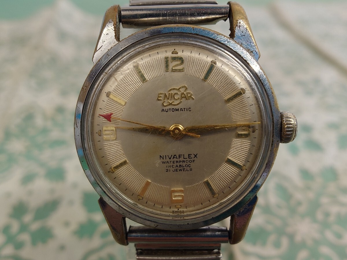 > ●レトロ ヴィンテージ ENICAR エニカ NIVAFLEX INCABLOC 21石 自巻き AUTOMATIC ジャンク品 ①