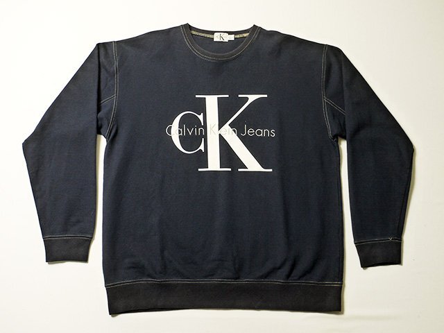 - オールド◆ Calvin Klein Jeans カルバンクライン スウェット Lサイズ ツートン トレーナー ペルー製 ロゴプリント 刺繍入り