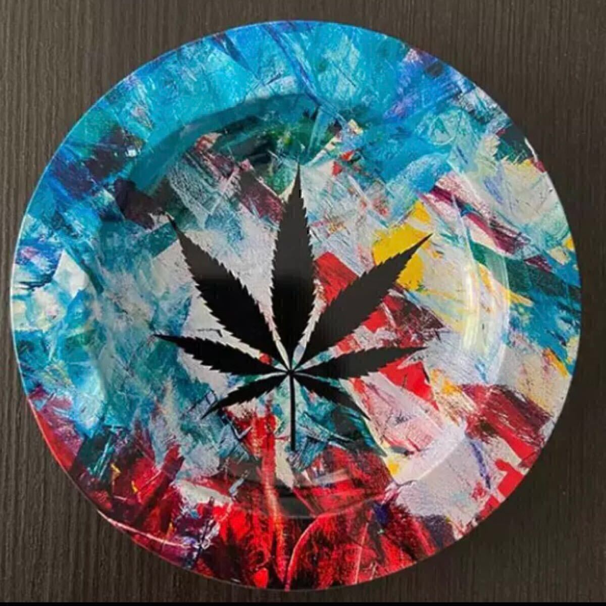- 【未使用】灰皿 アート ペイント スプレー カラー 五本指 葉っぱ 420 モチーフ 煙管 キセル タバコ パイプ シルバー