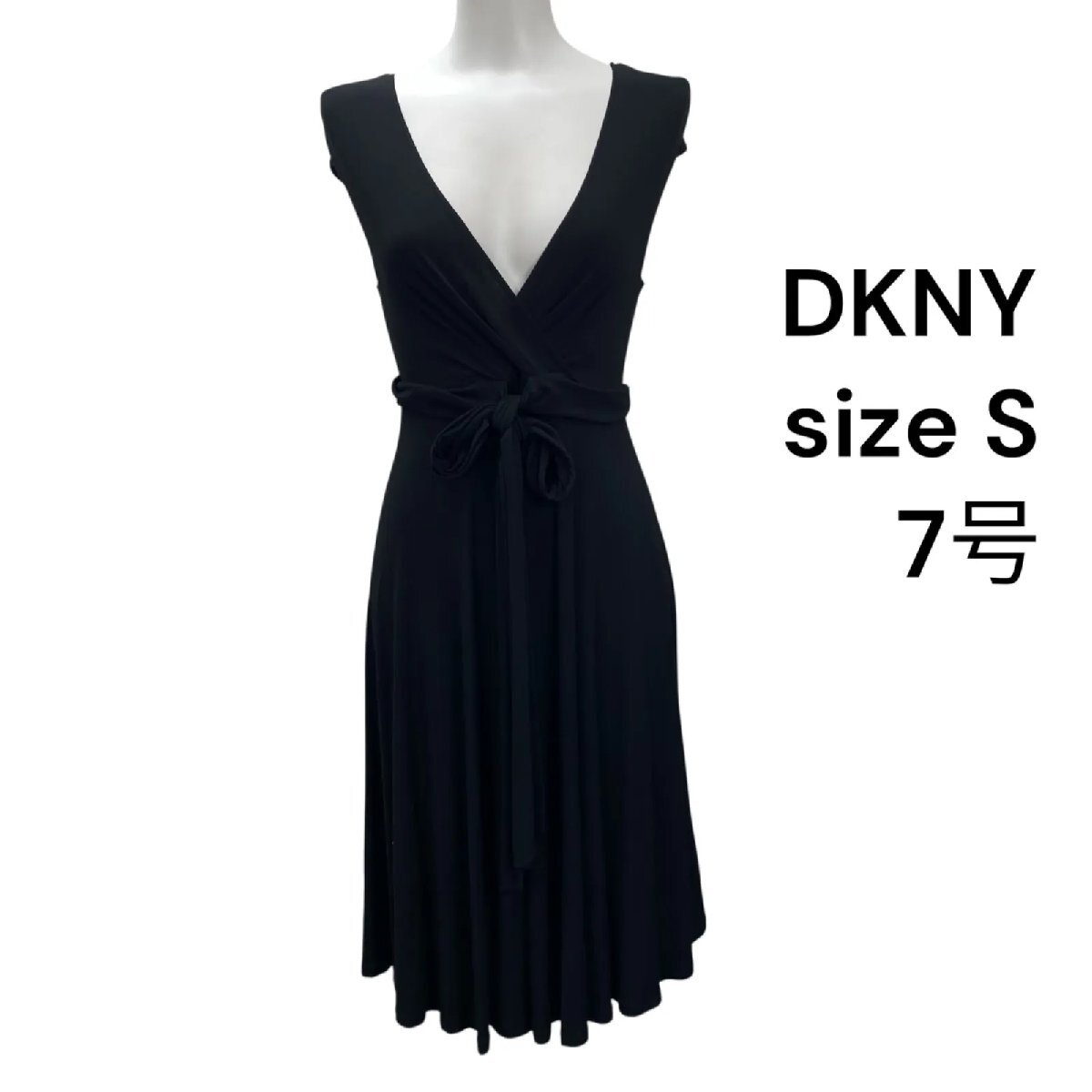 - ダナ キャラン ニューヨーク DKNY ワンピース 膝丈 ノースリーブ フレア ブラック S、7号 レディース S5T266