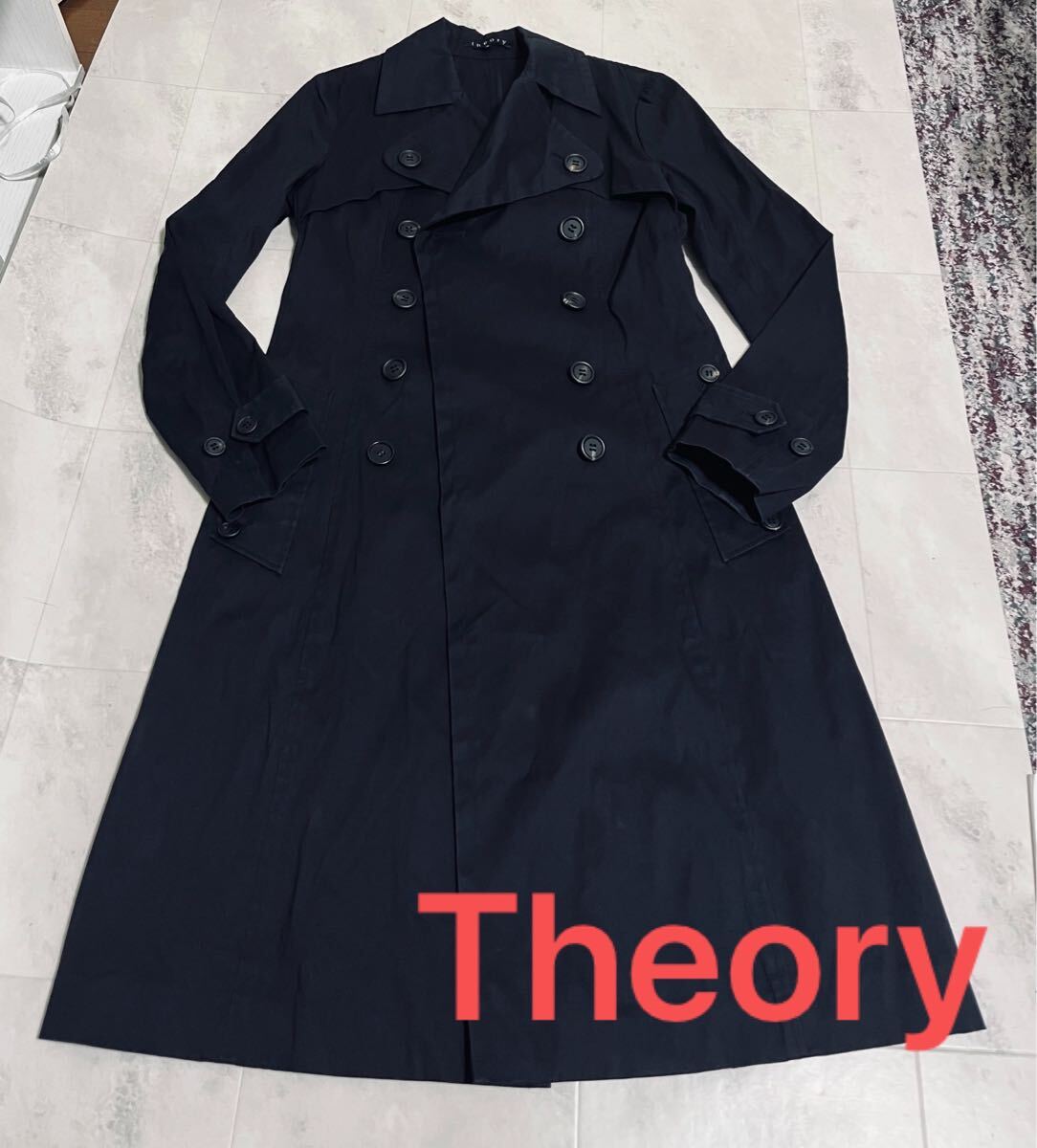 > セオリー Theory ロング トレンチコート アウター 無地 ストレッチ サイズ2 ブラック 黒 /レディース