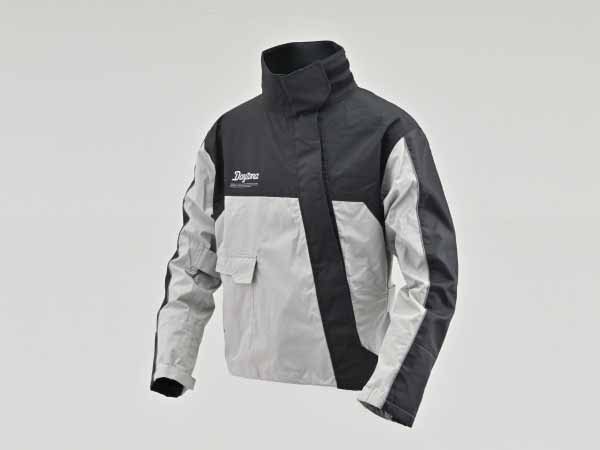 ジャケットは、動きやすいストレッチ生地を使用し、斜めに配置したフロントフラップがファスナーからの浸水を防止。