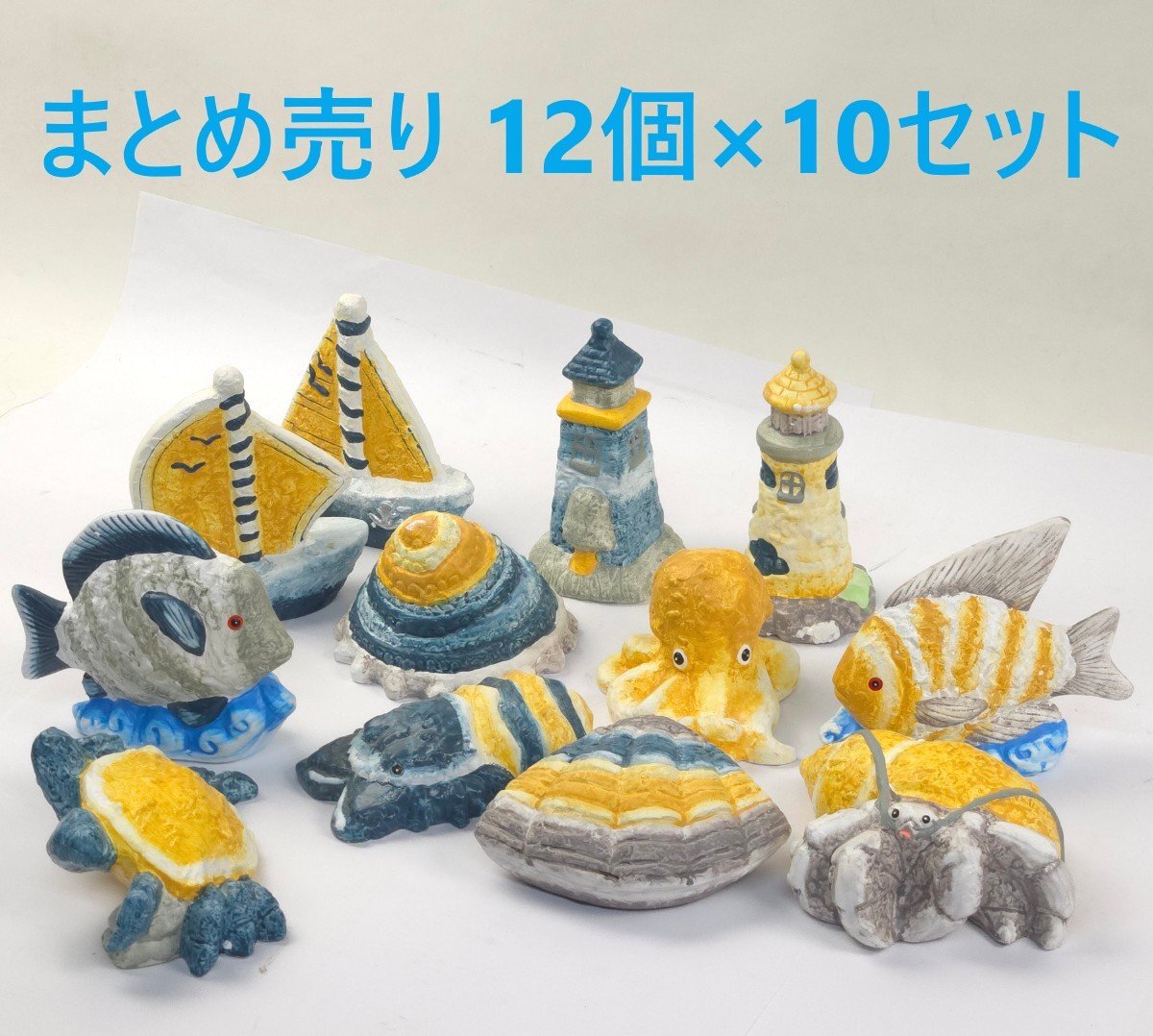 - [現状品 まとめ売り] 陶器 オブジェ 12種×10セット 魚 灯台 ヨット ヤドカリ 海の生き物 置物 インテリア アクアリウム 水槽 長期保管品