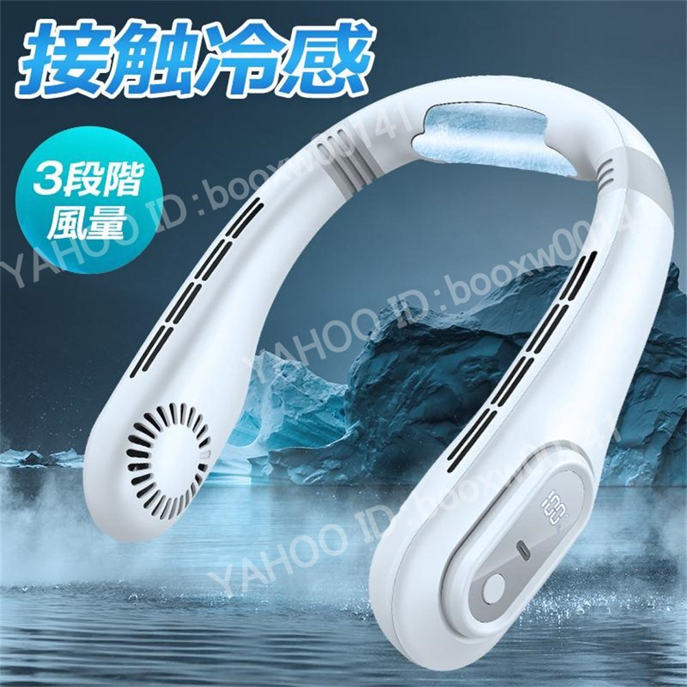 - 首掛け扇風機 携帯扇風機 ネッククーラー 扇風機 冷却 卓上 静音 羽なし 接触冷感 LED表示 冷却モード 冷却プレート クーラー 白 hhw0076.1