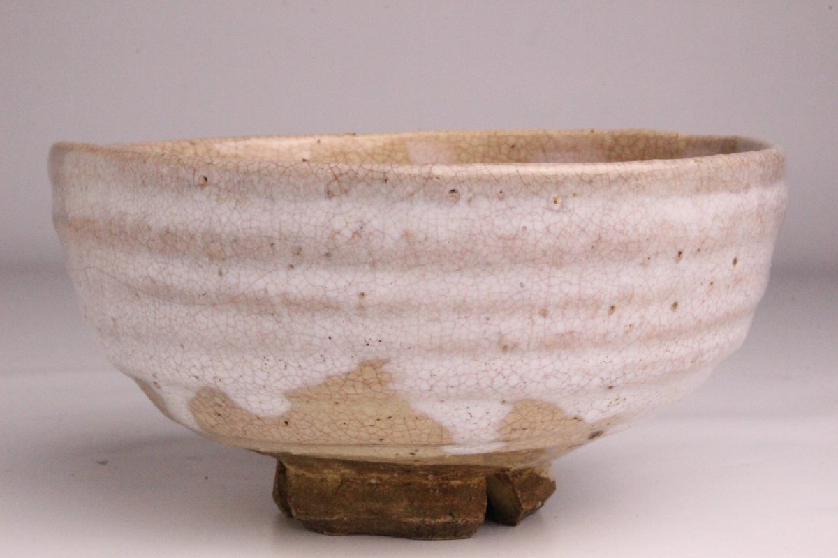 > 「狸庵RS」 九世 坂高麗左衛門(1849-1921) 作 萩焼 雪頽(ゆきなだれ)茶碗 「共箱」/ 旧家蔵 ☆本物保障☆