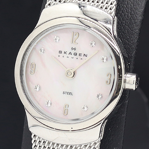 > 1円 取説/箱付 稼働 良品 スカーゲン J502XSSMP QZ シェル文字盤 レディース腕時計 2000000 11NBG IGR