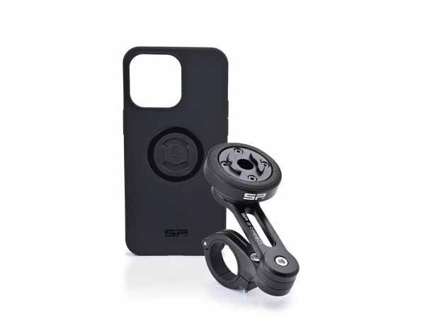 パイプハンドルにクランプするマウントとアンチバイブレーションモジュール、新型【SPC+】採用のフォンケースのセット。