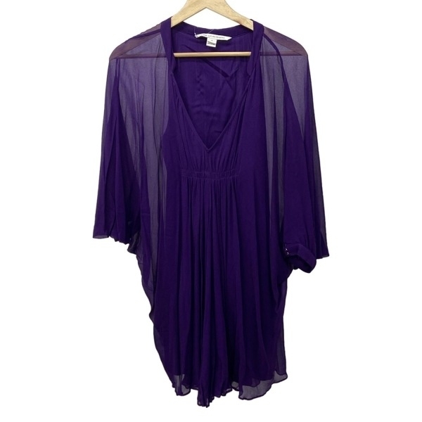 > ダイアン・フォン・ファステンバーグ DIANE VON FURSTENBERG(DVF) チュニック サイズ2 S - パープル レディース Vネック/七分袖/シルク