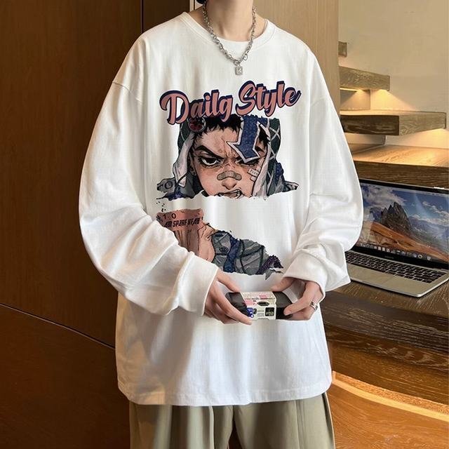- メンズトレーナー メンズ トップス スウェット秋春服 クルーネック プリント ファッション 2023 新作 ホワイト XL