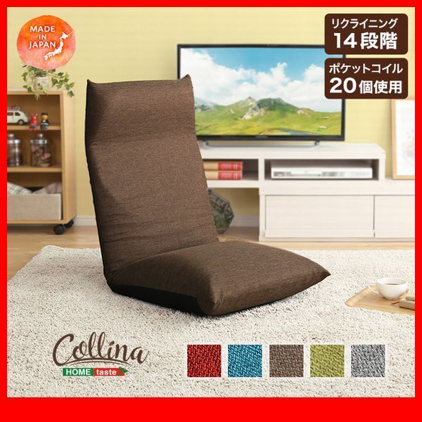- 座椅子★14段階リクライニングポケットコイル入り座椅子/日本製 完成品/ソファのような座り心地/フラット~二つ折り/青 茶 緑 赤 グレー/zz