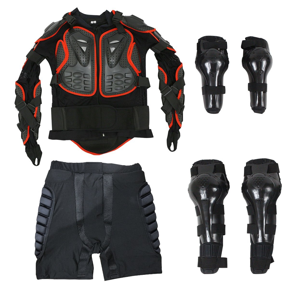 - 『セット2』バイクウェア ボディープロテクターセット XLサイズ レッド 長袖プロテクター&ニールガード&エルボガード&インナーパンツ
