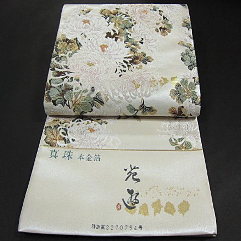 - 上質な逸品 新品未仕立 箱付 豪華作品 西陣織引箔高級袋帯 満開の大輪菊模様 真珠 本金箔 フォーマルに!