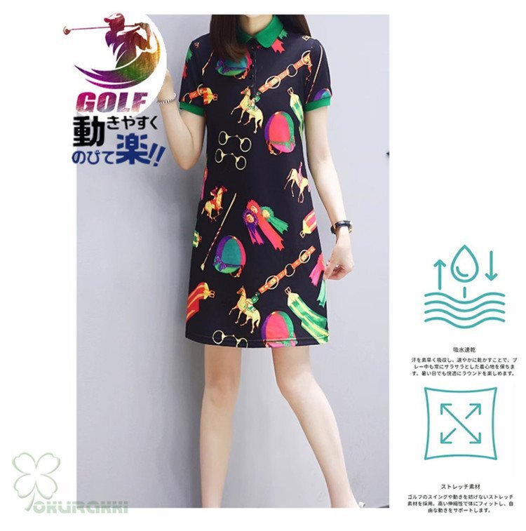- ゴルフウェア レディース ゴルフ ドレス ワンピース 丈長め ゴルフ スカート 半袖ワンピース 春 夏 新作 立体裁断
