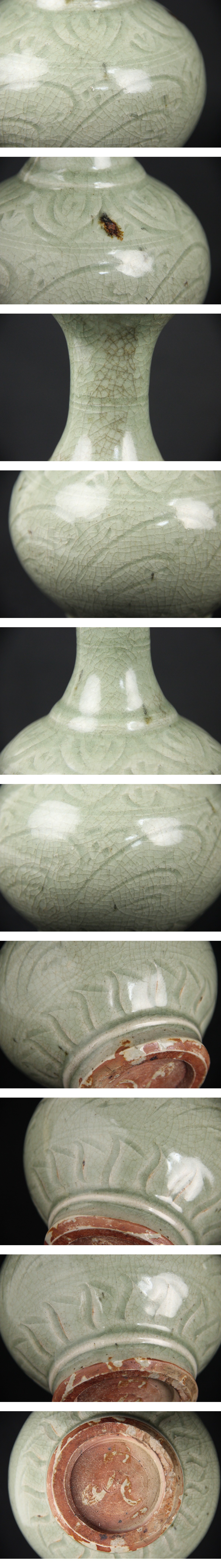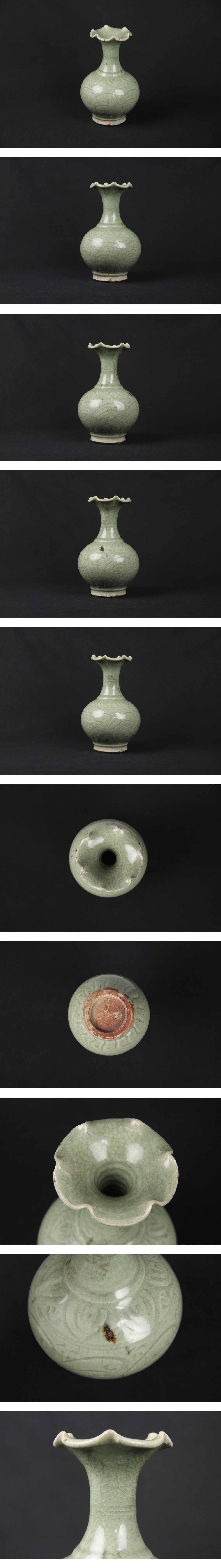- 中国美術 宋時代 龍泉窯 青磁 刻花 花瓶 荷葉口 古陶瓷 EN21-06
