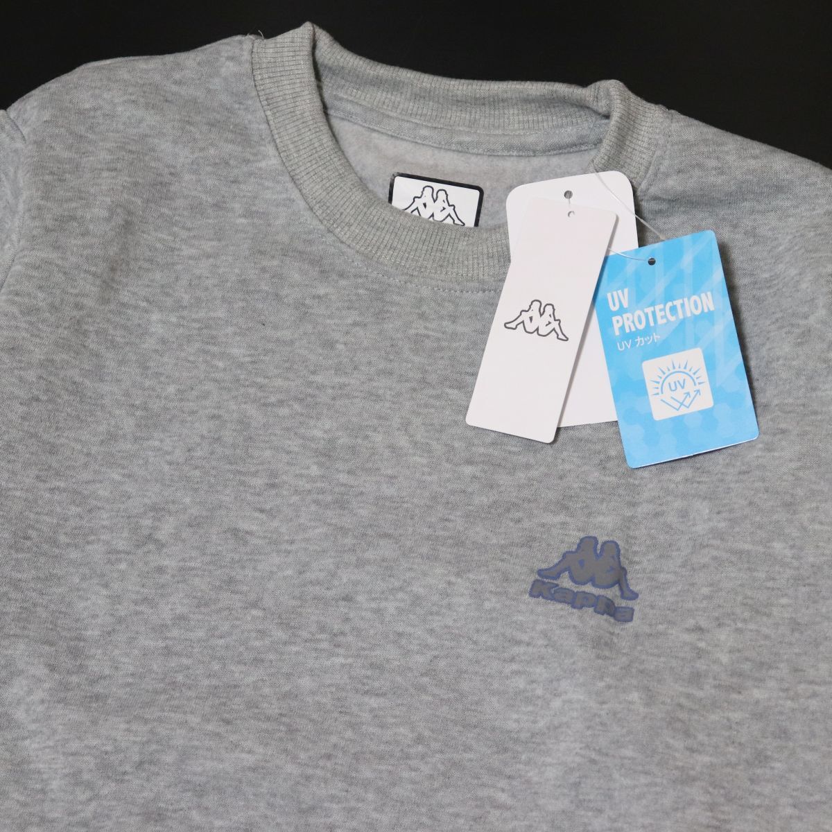 > ★カッパ KAPPA メンズ UVカット 裏起毛 保温 ロゴ入り スウェット トレーナー シャツ 灰 Mサイズ [245344-MGY-M] 一 三 壱★QWER★