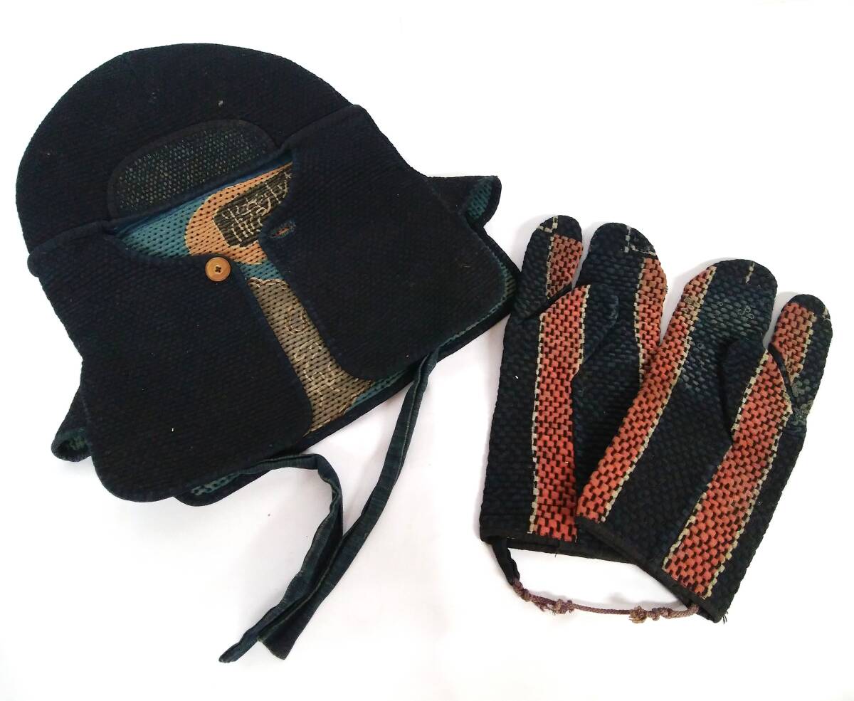 ●詳細【◆☆F4 時代物 刺し子 頭巾 手袋 木綿 藍染 火消し 消防刺子頭巾 火消帽子 古布 火消装束 昭和レトロ 古民芸 珍品 希少 骨董 ② 】