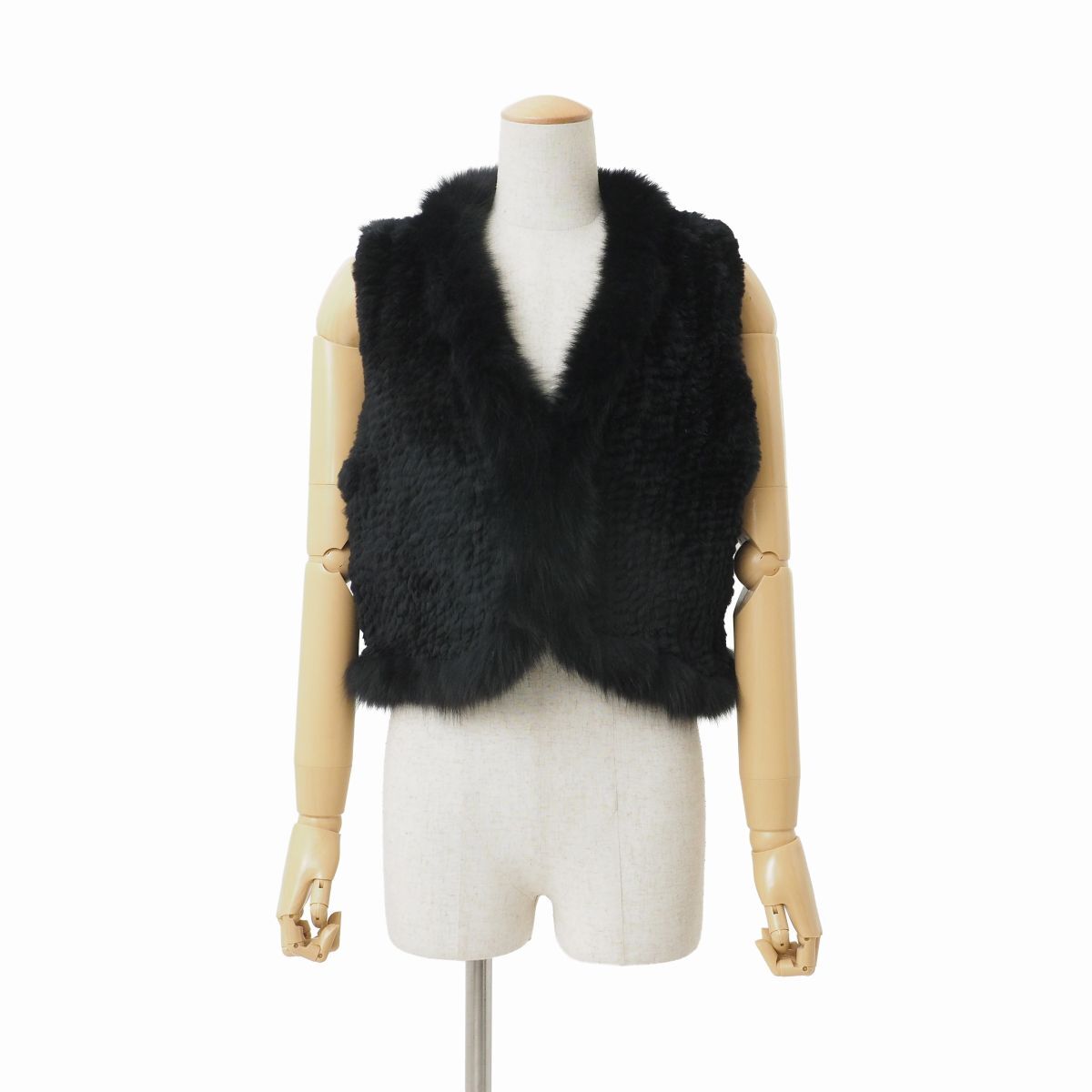 > GR9499▲未使用 PRIMATTIVO HANAE MORI SPORTS ハナエモリ ラビットファーヤーン ブルーフォックスファートリム ファーベスト ジレ 38