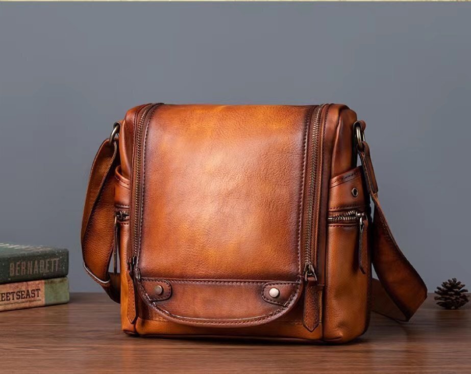 - 推薦★本革 ショルダーバッグ メンズ アンティーク 斜め掛け鞄 メッセンジャーバッグ 多機能 ヌメ革 本革 レザー 縦型 iPad収納
