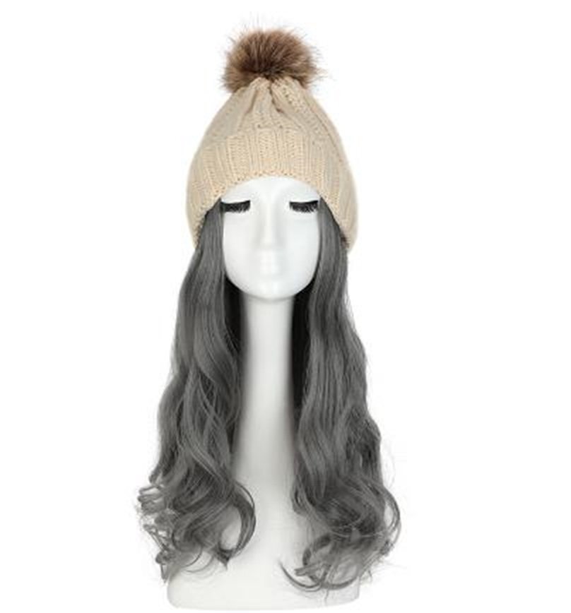 - ウィッグ付きニット帽 ニット帽/ベージュ ウィッグカラー/F ロングヘアー イメチェン 髪色チェンジ コスプレ
