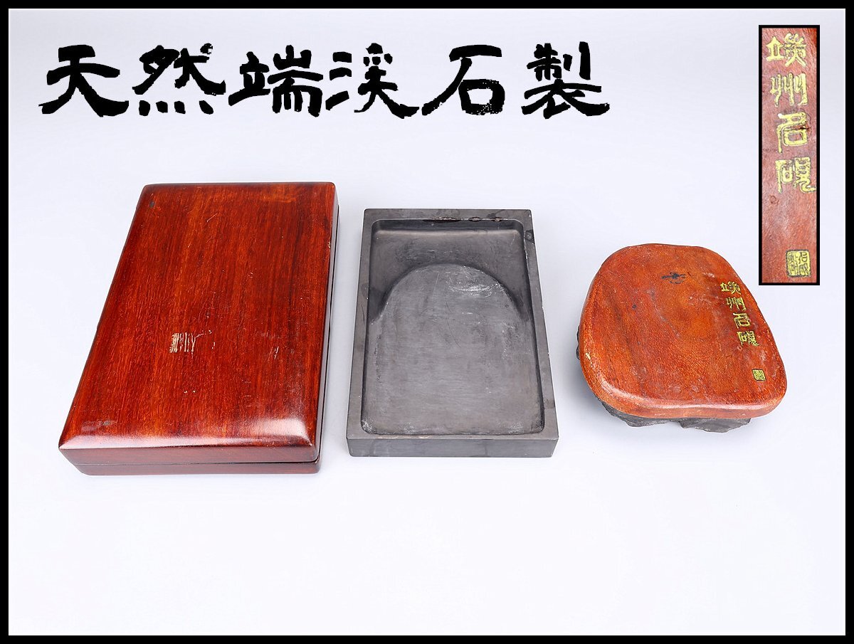【吉】BA923 唐物 【天然端渓石製】 書道具 端渓硯 3点 一括出品 重4033g/時代の小傷あり!拍卖