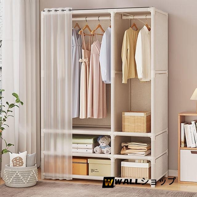 - ハンガーラック カーテン付き ワードローブクローゼット 分割 洋服収納 引き出し付き 大容量 防塵 防虫 防湿