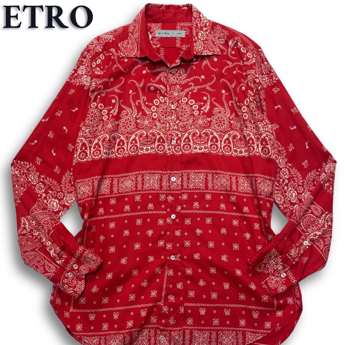 - 美品/希少L◎ エトロ《至極の逸品》ETRO ドレスシャツ 長袖シャツ ペイズリー柄 バンダナ レッド×ホワイト 赤 メンズ 秋冬◎ 入手困難◎