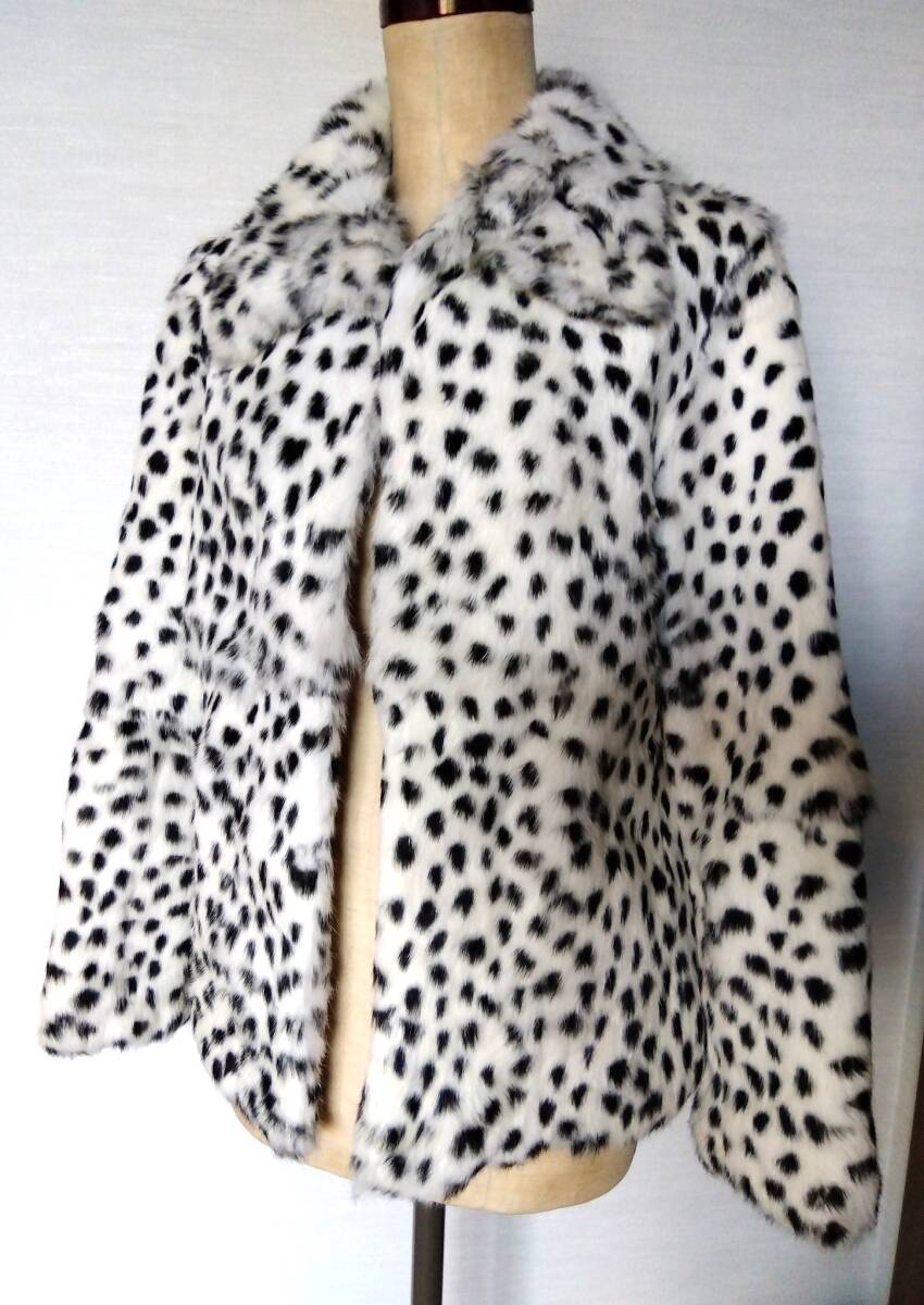 - ◆白黒ヒョウ柄 ラビットファージャケット コート サイズF◆