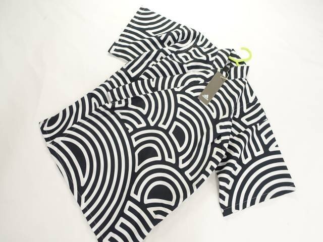 > 定価\6,990 キッズ 新品タグ付 アディダス adidas 半袖 洗える羽織り ブラック×ホワイト 総柄 ピンク ロゴ 【メール便可】