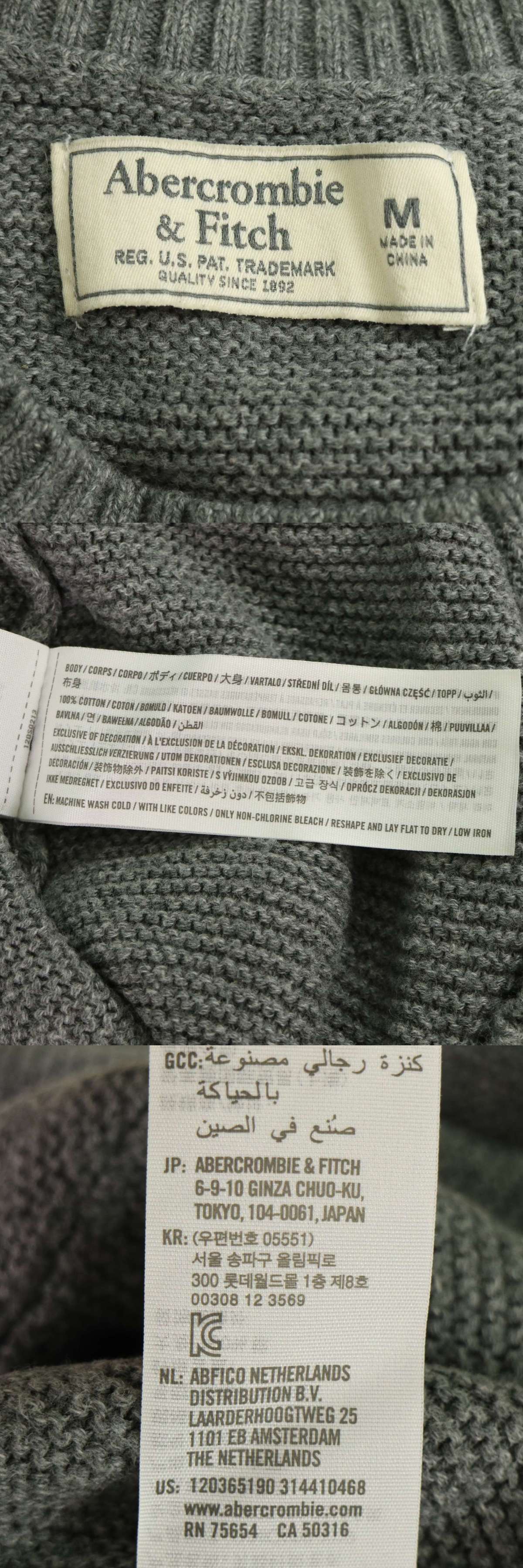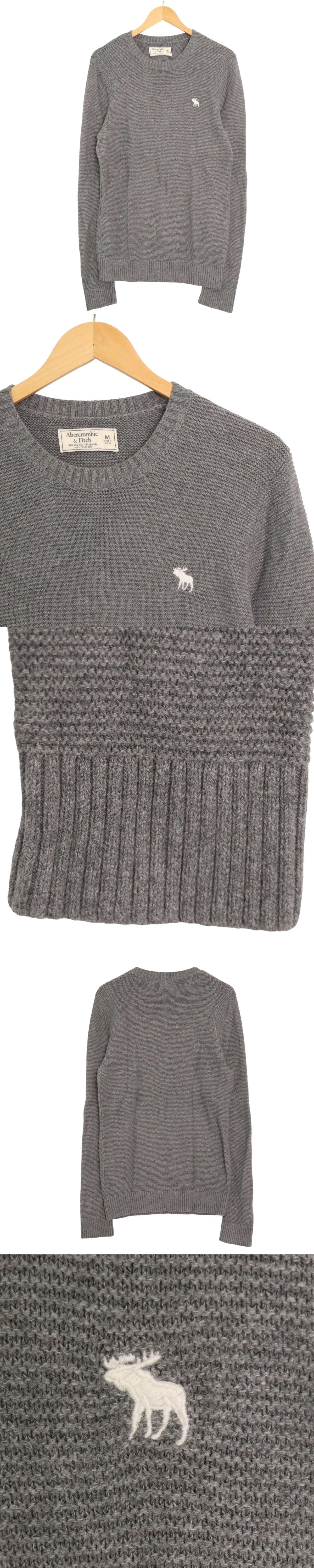 > Abercrombie&Fitch アバクロンビー&フィッチ 秋冬 ロゴ刺繍★ セーター ニット Sz.M メンズ 灰