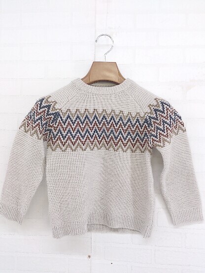 > ◇ ZARA ザラ 柄 クルーネック キッズ 子供服 長袖 ニット セーター サイズ6 ベージュ ブラウン系 レディース E