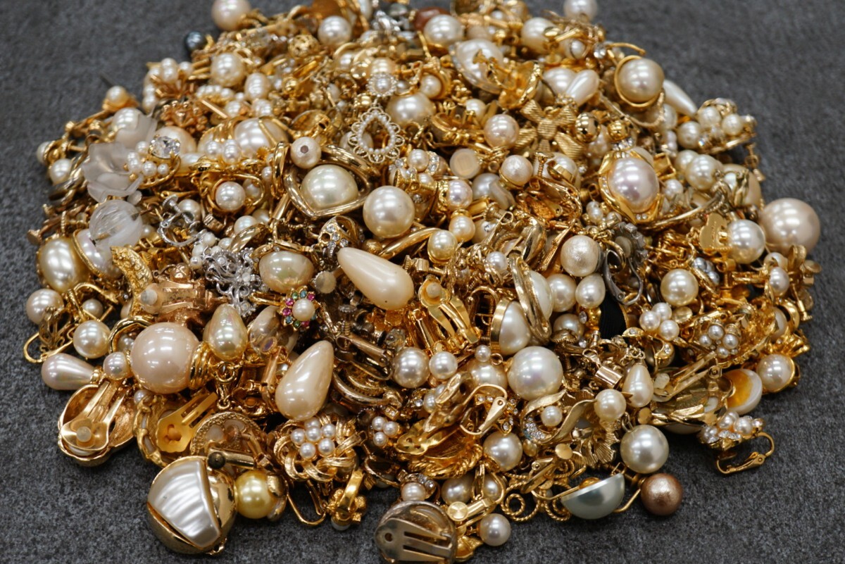 > D1069 パール風 ゴールドカラー ヴィンテージ イヤリング 片耳 ジャンク品 1046g アクセサリー 大量 セット まとめて おまとめ まとめ売り