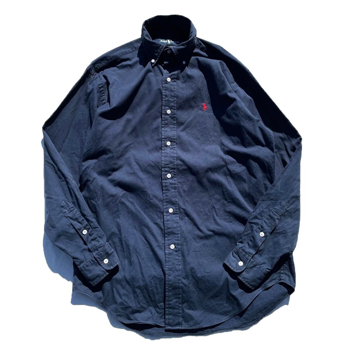 - アイビー! 90s Polo Ralph Lauren ラルフローレン ヴィンテージ BLAIRE ロゴ刺繍 ボタンダウン 長袖シャツ ネイビー 紺 S メンズ 古着 希少