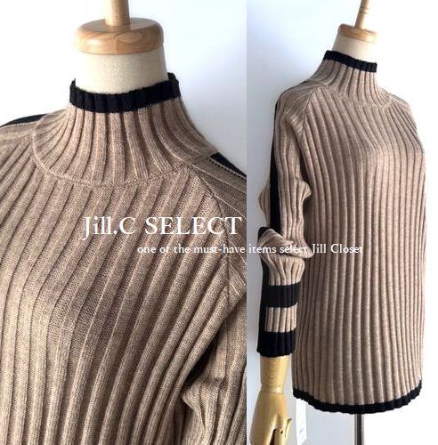 - 新品【送料185円】太リブ×バイカラー配色*ハイネック デザインニット*締め付け感のない 柔らかな着心地♪ストレッチ プルオーバー4258BE