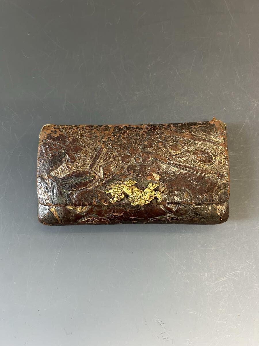 - 煙草入れ カマス 金唐革 提物 獅子金具 提げ物
