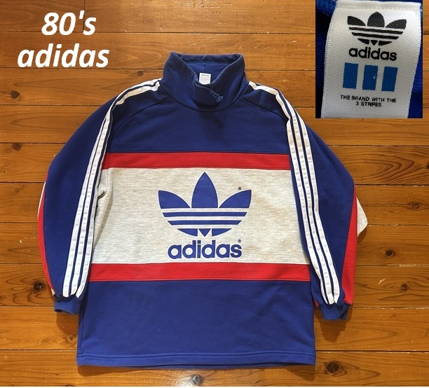 - 80's adidasアディダスハイネックスウェットML★トレフォイルロゴトレーナープルオーバーデサント製