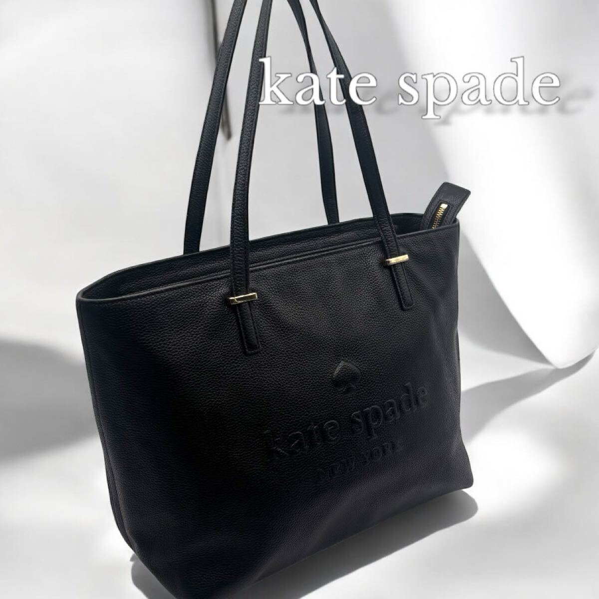 - 同梱可 kate spade ケイトスペード レディース トート ビジネスバッグ レザー 本革 ブラック 黒 肩掛け A4可能 エンボスロゴ 立体ロゴ