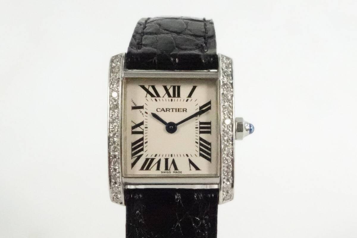 > Cartier カルティエ 腕時計 レディース クォーツ ダイヤベゼル タンクフランセーズ SM 2384 ホワイト文字盤 ブランド 時計