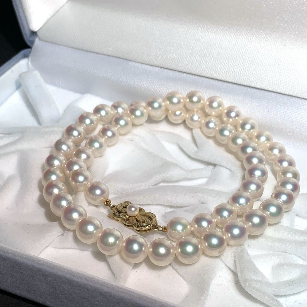> K14/MIKIMOTO ミキモト アコヤ あこや パール ネックレス 本真珠 照り最強 ホワイト 白 約7.5mm-8mm 約44cm 約36.2g 14金