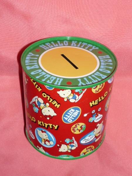 - 激レア!カワイイ♪ 2002年 サンリオ ハローキティ 丸筒型 缶製 貯金箱☆