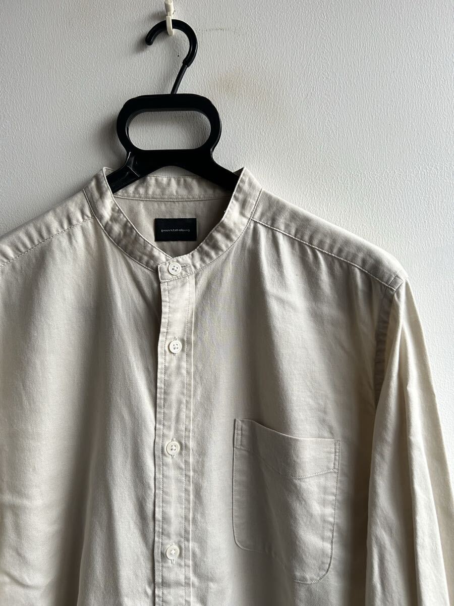 > 【美品】green label relaxing シャツ メンズ L バンドカラー ベージュ グリーン レーベル リラクシング