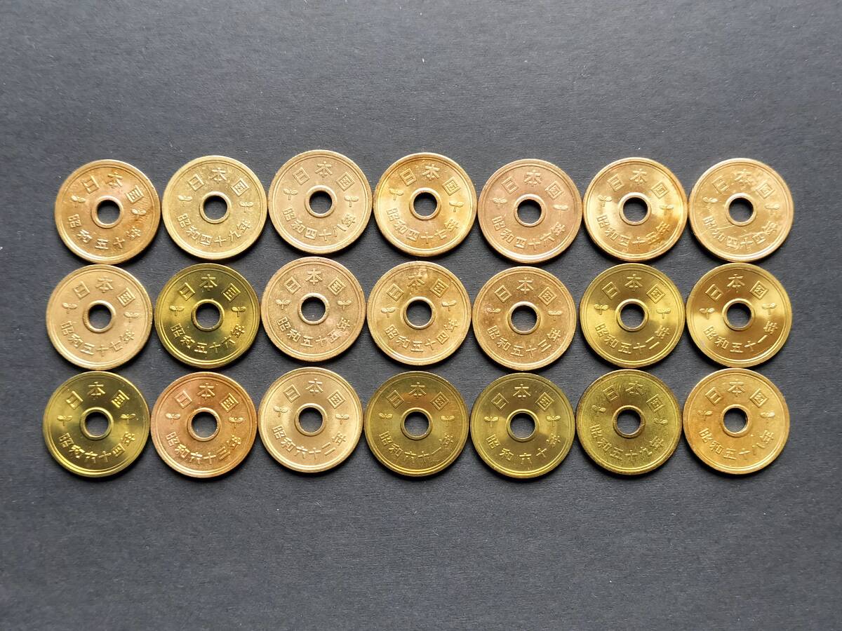 - 5円黄銅貨<昭和44年~昭和64年>21枚★完揃