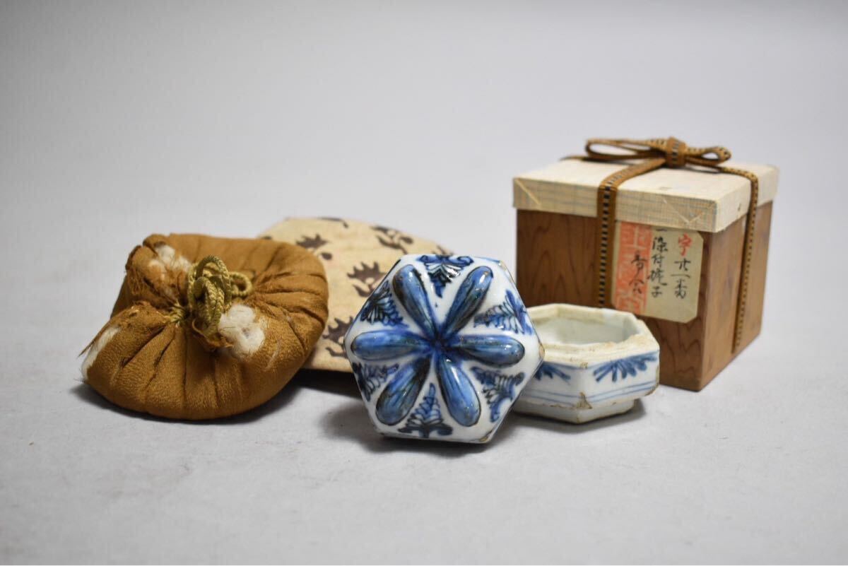 > 【英】A660 古染付香合 中国美術 朝鮮 韓国 香道具 盒子 蓋物 青花 骨董品 美術品 古美術 時代品