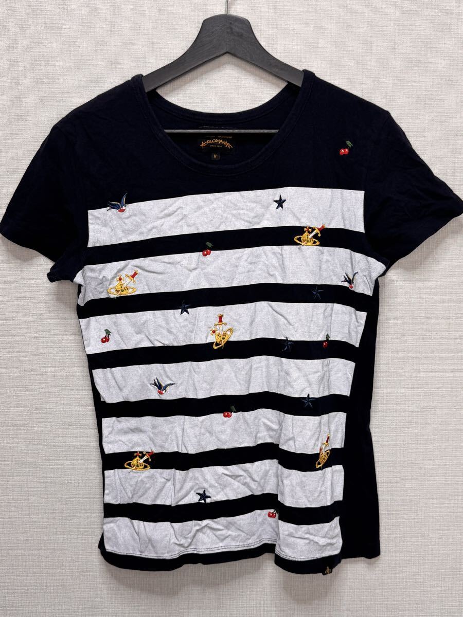 > 1円 美品 Vivienne Westwood ANGLOMANIA ヴィヴィアン ウエストウッド アングロマニア ボーダー Tシャツ 半袖 ネイビー ホワイト Mサイズ