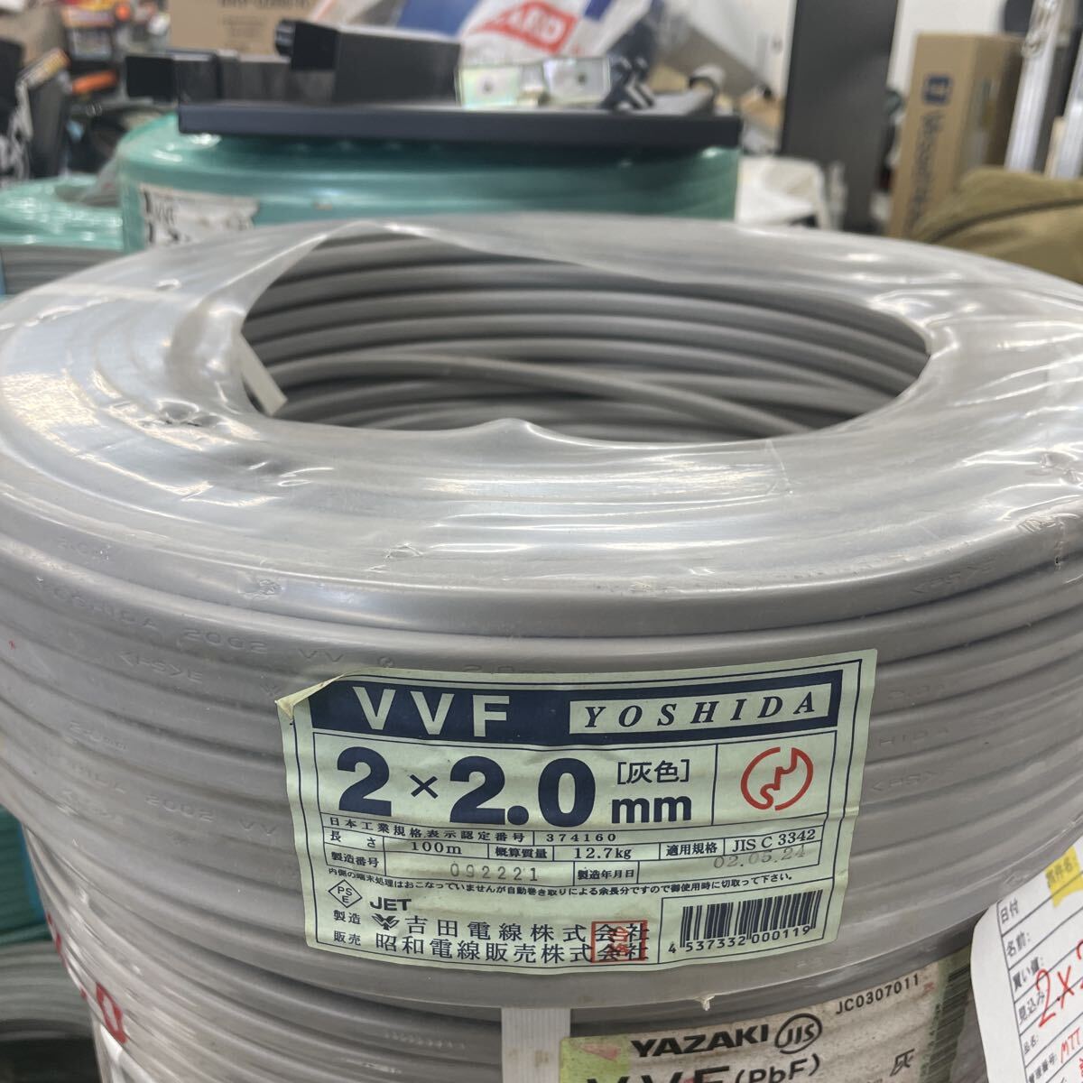 - MTK23【未使用】YOSHIDA 吉田電線 VVFケーブル 2×2.0mm 2.0mm×2芯 VVF 2.0×2C 100m 12.7kg 灰色 電線 電材